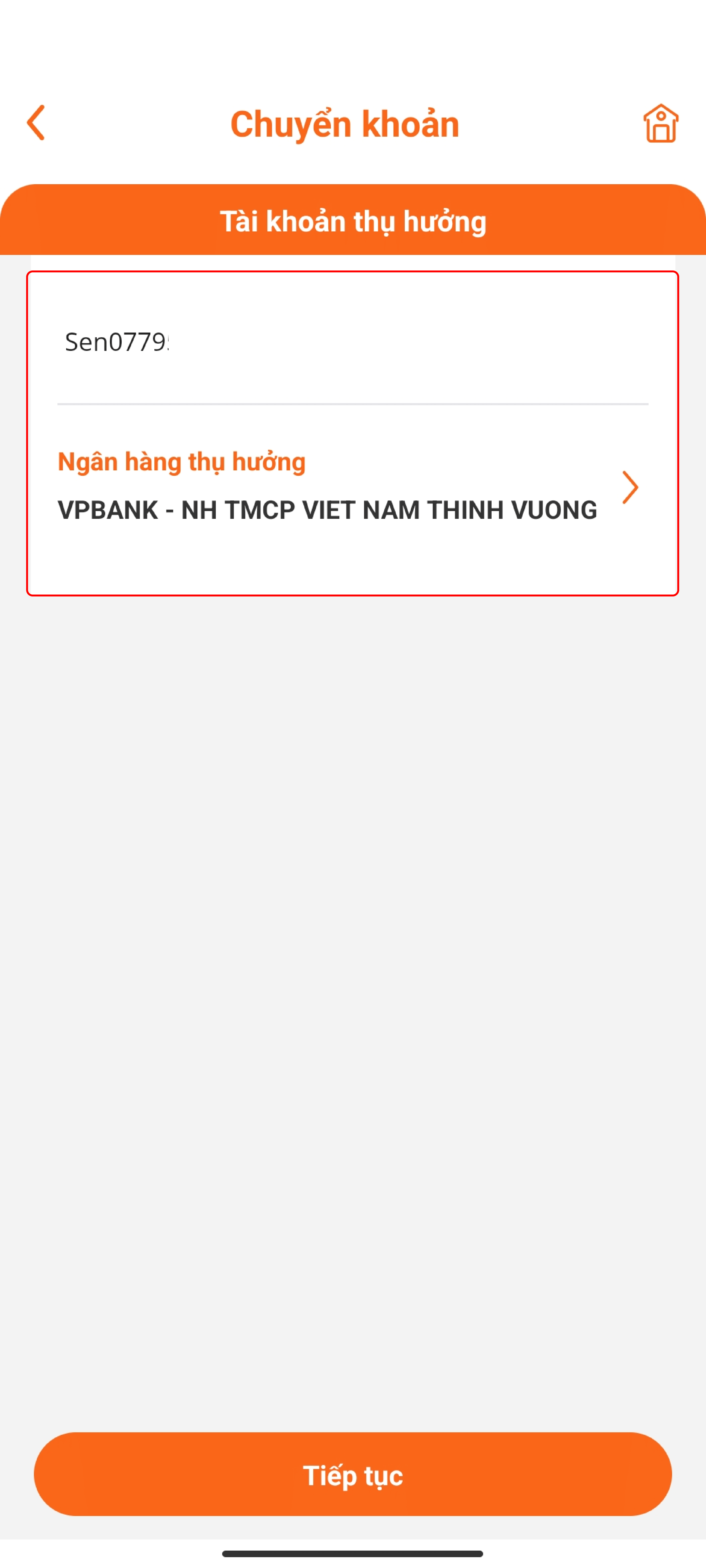 Bước 3: Chọn ngân hàng thụ hưởng là VPBank