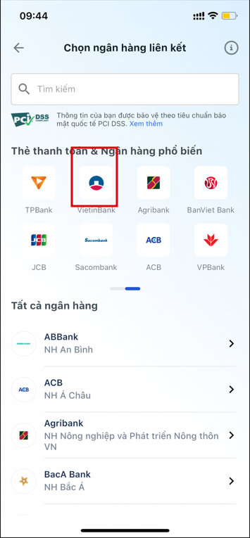 Bước 2: Chọn Vietinbank