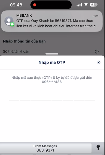 - Các thông tin số CMND/CCCD, họ tên, ngày phát hành, số thẻ cần được nhập chính xác theo thông tin đã đăng ký với MBBank.