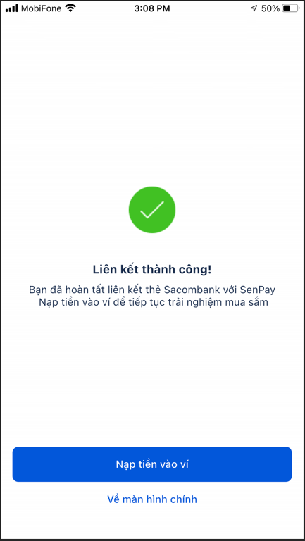 - Họ tên chủ tài khoản, số CCCD và số điện thoại đăng ký Ví SenPay trùng với thông tin đăng ký tài khoản Sacombank.